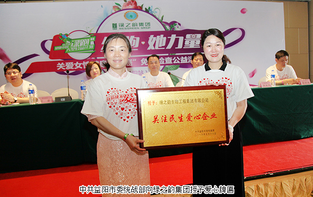 2018年5月16日,由中共湖南省委統(tǒng)戰(zhàn)部發(fā)起主辦,湖南省婦女聯(lián)合會、湖南省衛(wèi)生和計劃生育委員會、湖南省慈善總會、湖南省海外聯(lián)誼會指導,中共益陽市委統(tǒng)戰(zhàn)部承辦,益陽市民政局、益陽市婦女聯(lián)合會、益陽市衛(wèi)生與計劃生育委員會組織實施,綠之韻集團支持參與的大型公益項目“綠跑?她力量 關愛女性健康——‘兩癌’免費公益檢查活動啟動儀式”在益陽市舉行。