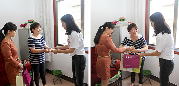 走進第一位受訪媽媽的家里,綠之韻愛心志愿者們就聞到一股濃濃的中藥味,45歲的貧困母親李思源不好意思地笑著說,家里兩位老人家身體不好,每天都要喝藥,這味道自己家里人都習慣了。話還沒說完,李思源的媽媽已經(jīng)顫巍巍端著茶水招待我們,志愿者們忙不迭接過水,說不忙,不客氣,我們就是來看看您一家人。
