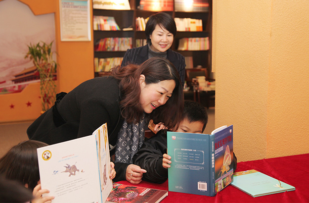 上午一大早,綠之韻志愿者們帶著家中的小朋友來(lái)到綠之韻黨建文化基地圖書(shū)室挑選書(shū)籍。綠之韻集團(tuán)董事總裁、綠之韻公益基金會(huì)理事長(zhǎng)勞嘉得知下午的活動(dòng)后,便來(lái)到圖書(shū)室與孩子們一起挑選適讀的書(shū)籍、畫(huà)冊(cè),為晨光中心的孤殘兒童送去最美好的祝愿。孩子們爭(zhēng)先恐后地向勞嘉總裁描述著自己挑選的書(shū)籍畫(huà)冊(cè),互相比拼著誰(shuí)挑選的書(shū)更有趣,誰(shuí)的書(shū)插畫(huà)更多,稚嫩童真的話語(yǔ)令現(xiàn)場(chǎng)志愿者們?nèi)炭〔唤?br/>