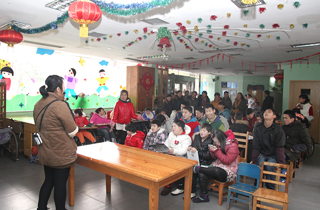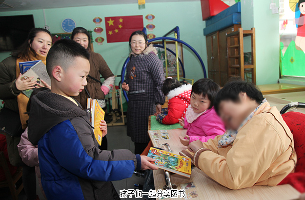 布置溫馨的活動(dòng)室里,孩子們團(tuán)坐一起,觀看由晨光中心的孩子們帶來(lái)的精彩節(jié)目,并伴隨音樂(lè)打起了節(jié)拍。在隨后的自由活動(dòng)時(shí)間里,孩子們有的三兩成群共讀一本畫(huà)冊(cè),相互交流著書(shū)中的內(nèi)容;有活潑些的,帶著小孩在一起追逐玩游戲,活動(dòng)室里充滿了孩子們的歡聲笑語(yǔ)。