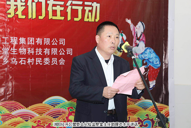 辭舊迎新,喜迎八方來賓;寒冬送暖,共助精準(zhǔn)扶貧。2018年1月24日,為了深入貫徹黨的十九大精神,扎實(shí)做好精準(zhǔn)扶貧工作,進(jìn)一步增進(jìn)幫扶企業(yè)和群眾之間的感情,在臘八節(jié)濃濃的節(jié)日氛圍中,由綠之韻集團(tuán)主辦、湖南胡茂盛堂生物科技有限公司和瀏陽市小河鄉(xiāng)烏石村協(xié)辦的“精準(zhǔn)扶貧,我們在行動”主題活動——烏石農(nóng)產(chǎn)品直購會和項(xiàng)目簽約啟動會成功舉行。小河鄉(xiāng)黨委副書記、鄉(xiāng)長梁民,瀏陽經(jīng)開區(qū)管委會紀(jì)檢監(jiān)察室主任助理鄧水平,烏石村村支部書記賴平;綠之韻集團(tuán)董事總裁、綠之韻公益基金會理事長勞嘉,綠之韻集團(tuán)黨委書記劉云、副書記許達(dá)仲一行,與烏石村黨員、群眾、村組干部等近百人參加此次活動。