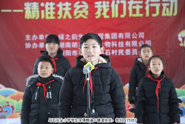 凜冽的寒風(fēng)擋不住送關(guān)懷的腳步,入冬的嚴(yán)寒冷卻不了送溫暖的心。本次活動由綠之韻國際商學(xué)院院辦公室副主任王壯和烏石村張娟老師共同主持。瀏陽經(jīng)開區(qū)管委會紀(jì)檢監(jiān)察室主任助理鄧水平致歡迎詞,他首先對綠之韻集團(tuán)熱心公益、助力精準(zhǔn)扶貧的行為表示衷心感謝。在黨中央的“脫貧攻堅(jiān)”號召下,在各級黨委政府的關(guān)心幫助下,在各界愛心企業(yè)的幫扶下,烏石村的精準(zhǔn)扶貧工作取得了階段性的勝利,到2017年底“省定貧困村”的窮帽子勝利摘掉了,村組道路實(shí)現(xiàn)硬化、亮化,村容村貌實(shí)現(xiàn)了美化,水利設(shè)施逐步完善,醫(yī)療衛(wèi)生、義務(wù)教育有了保障,全村飲水安全可靠,村民致富道路寬敞了。今天這些成績的取得,得益于黨中央的扶貧政策順利落實(shí),得益于各級黨委政府的正確領(lǐng)導(dǎo),得益于像綠之韻集團(tuán)這樣的愛心企業(yè)無私幫助。下一步支村兩委將繼續(xù)在十九大精神的指引下,團(tuán)結(jié)拼博,銳意進(jìn)取,真抓實(shí)干,帶領(lǐng)全村一個不落走向共同富裕的小康社會。