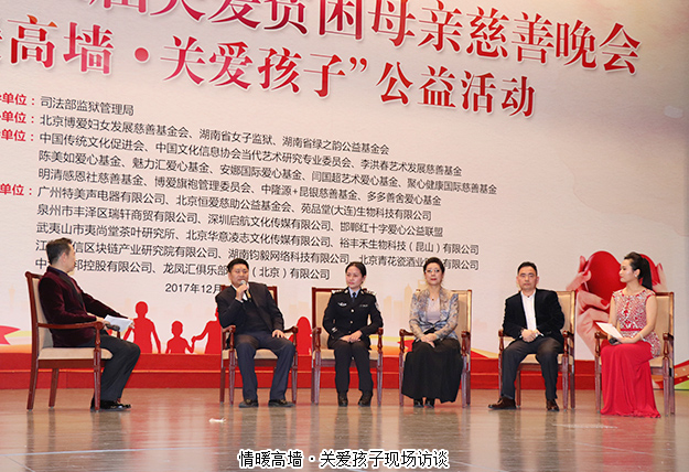 晚會現場,司法部監(jiān)獄管理局與北京博愛婦女發(fā)展慈善基金會啟動了“情暖高墻·關愛孩子”公益項目。據介紹,項目從2018年開始將在部分省市司法及監(jiān)獄系統(tǒng),特別是女子監(jiān)獄對服刑人員的失學孩子進行幫扶工作,讓他們重新走進課堂,同時邀請醫(yī)務專家為監(jiān)獄基層警察及服刑人員患者開展“慈善義診”,這也是第一次由司法部行政主管部門與慈善組織合作為特殊的孩子開展救助工作。