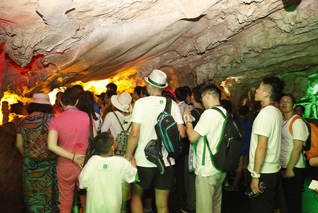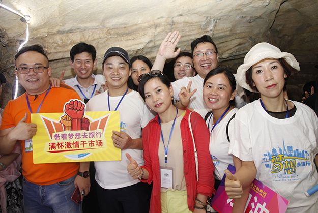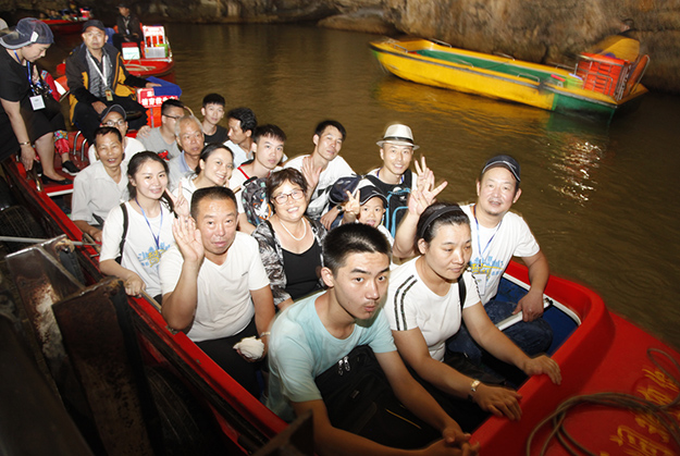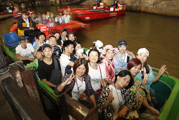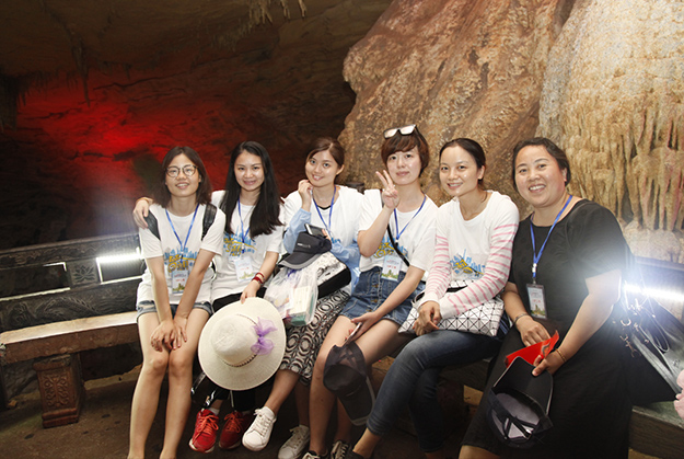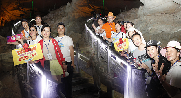 炙陽高照,黃龍洞自然空調(diào)帶來的清涼是送給伙伴們的第一份禮物。黃龍洞是“世界溶洞全能冠軍”,超過10萬平方米的龐大洞穴空間,立體的洞穴結(jié)構(gòu),高大的洞穴瀑布,寬闊的龍宮廳及數(shù)以萬計的石筍,仿佛一座神奇的地下“魔宮”。綠之韻家人們穿梭其中,無所不奇,無奇不有,深深陶醉在大自然神奇的懷抱里,驚嘆不已。