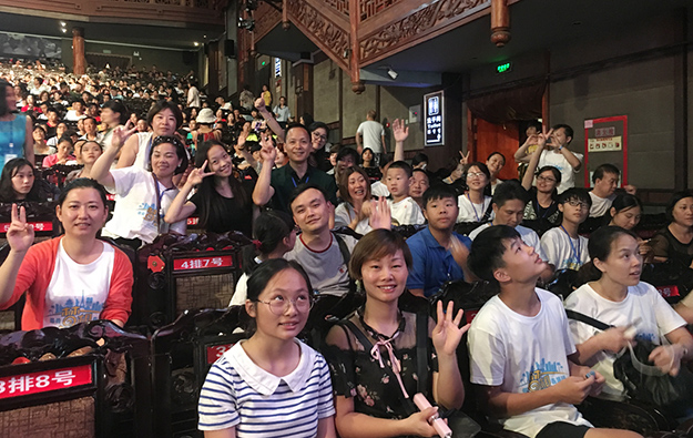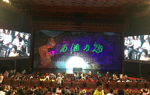 入夜的張家界微風(fēng)輕拂,風(fēng)情十足。到達(dá)張家界的第一天,綠之韻家人們乘著月色前往觀看“魅力湘西”大型文藝節(jié)目?!镑攘ο嫖鳌笔窍嫖魑幕目s影,在保留湘西原生態(tài)民俗文化的前提下,將民族音樂和舞蹈與聲、光、電完美結(jié)合,讓觀眾欣賞到一臺原汁原味的湘西文化大餐,是當(dāng)?shù)厣贁?shù)民族風(fēng)俗的靈魂。綠之韻伙伴們興高采烈地盡情觀賞,直到節(jié)目結(jié)束都意猶未盡。