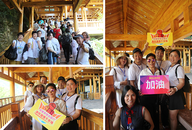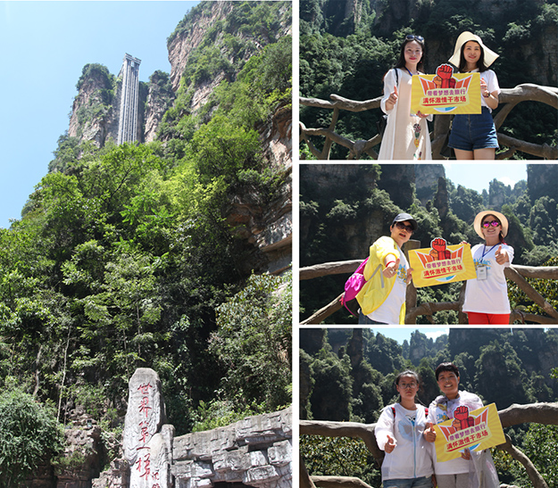 行程第三天,綠之韻家人們迎來了游覽張家界國家森林公園的激情挑戰(zhàn)。天子山是武陵源區(qū)四大風(fēng)景之一,這里不但有奇山秀水,還有淳樸的民情、奇特的民俗和獨具風(fēng)味的民族食品。進(jìn)入景區(qū),綠之韻營銷精英們統(tǒng)一乘坐“世界第一梯”百龍?zhí)焯萆仙?。百龍?zhí)焯輾鈩莼趾?,因其“世界上最高、運行速度最快、載重量最大的電梯”而被載入吉尼斯世界紀(jì)錄。家人們乘電梯以5米/秒的速度上山,慷慨科技進(jìn)步的同時,驚嘆于張家界的高山絕景和大自然的鬼斧神工。山上風(fēng)景如畫,綠之韻人游覽其中樂趣無窮。從袁家界到十里畫廊,營銷精英們冒著烈日,拾級而上,相互鼓勵,跨越過七千多級臺階,走完了全程。一路上,留下了綠之韻人的堅毅腳步和歡聲笑語!