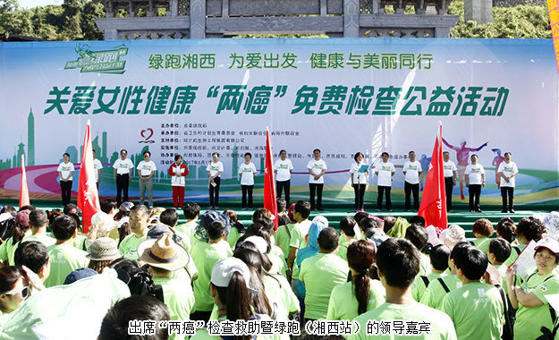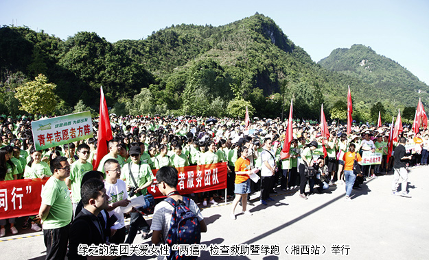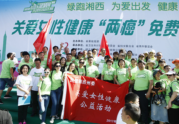 為切實把這項“造福廣大農(nóng)村家庭和關(guān)愛女性健康的民心工程”不折不扣地落實好,讓適齡婦女群眾真正得實惠、普受惠、長受惠。2017年5月13日,由中共湖南省委統(tǒng)戰(zhàn)部、湖南省婦女聯(lián)合會、湖南省衛(wèi)生和計劃生育委員會、湖南省海外聯(lián)誼會、中共湘西自治州委統(tǒng)戰(zhàn)部、湘西自治州婦女聯(lián)合會、湘西自治州衛(wèi)生和計劃生育委員會、湘西自治州海外聯(lián)誼會以及綠之韻集團(tuán)聯(lián)合開展的“關(guān)愛女性健康‘兩癌’免費檢查暨綠跑公益活動”在湘西自治州吉首市舉行。