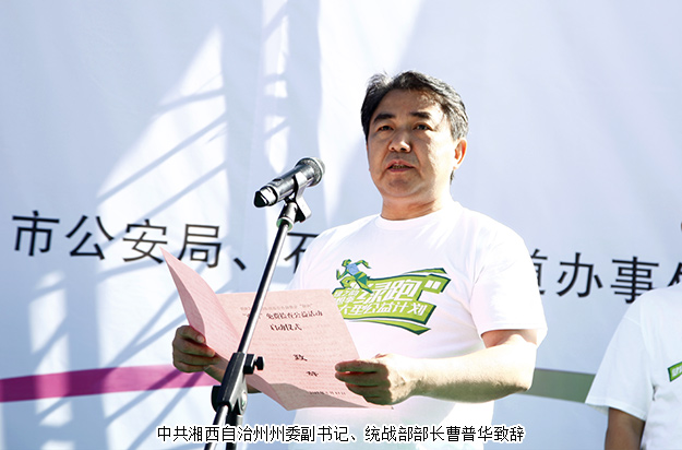 湖南省政協(xié)副主席、民盟省委主委楊維剛,中共湖南省委統(tǒng)戰(zhàn)部副部長胡東風(fēng),湖南省婦聯(lián)黨組書記、主席姜欣,中共湘西自治州州委書記葉紅專,州委副書記、州長龍曉華,州委副書記、統(tǒng)戰(zhàn)部部長曹普華,州委常委、吉首市委書記劉珍瑜,州人大常委會副主任、民盟州委主委劉小剛,州人民政府副州長李平,州政協(xié)副主席向頂天及湖南省政協(xié)委員、省工商聯(lián)(總商會)副會長、省慈善總會副會長、綠之韻集團(tuán)董事長胡國安,湘籍奧運冠軍楊霞,綠之韻集團(tuán)(直銷業(yè)務(wù))副總經(jīng)理胡均安,綠之韻集團(tuán)黨委書記劉云等領(lǐng)導(dǎo)嘉賓,與來自全國各地的健康跑愛好者、綠之韻愛心志愿者、當(dāng)?shù)厝罕姽灿?000多人參與了此次活動,獻(xiàn)愛湘西,踐行公益,助力健康中國。