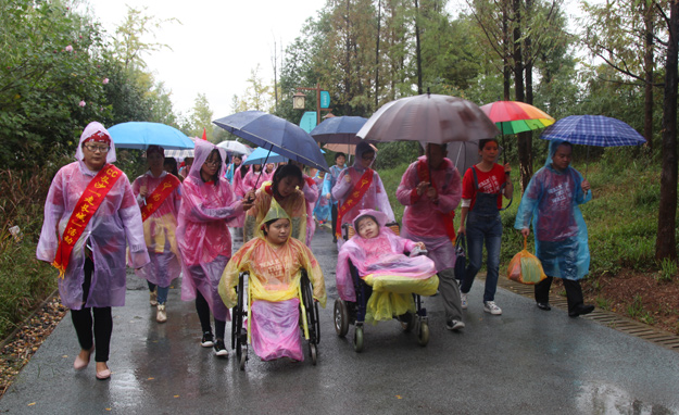 “愛使我們?cè)谝黄?,我們手拉手;愛是我們的回答,面?duì)挑戰(zhàn);希望是我們的祝福,手拉手、心相連,我們是一家人。”愛心志愿者們?nèi)宄扇?,沿著既定的線路徒步前行,大家或打著雨傘、或穿著雨衣,以眼神鼓勁,用微笑問候,憑借著堅(jiān)韌的意志和奉獻(xiàn)愛心的渴望,全部走完既定的環(huán)公園路程,安全返回,互致勝利的祝福,并合影紀(jì)念。
