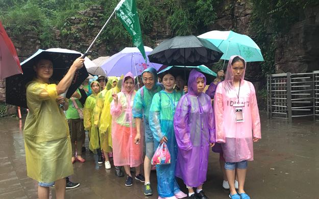 天公不作美,進入武陵源景區(qū)后,張家界下起了雨,家人們紛紛穿上了五顏六色的雨衣,為濃郁的森林添加了一抹亮麗的風采。在確保安全的情況下,綠之韻的家人們都不懼風雨,跨越過七千多級臺階,走完了全程,每個腳印都鐫刻著綠之韻人的堅毅!一位營銷精英說道:“來張家界隨時都有山看,可是雨中張家界,如此云霧繚繞的仙境實在難得!”
