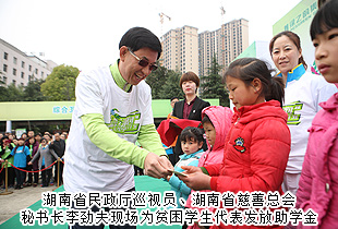 綠韻健跑,大愛隨行?;顒蝇F(xiàn)場,10位來自瀏陽烏石村的貧困學(xué)生代表在“綠跑”啟動儀式上獲得愛心捐贈。湖南省民政廳巡視員、湖南省慈善總會秘書長李勁夫上臺發(fā)表講話,他表示,今年全國兩會上,中國首部《慈善法》通過審議。綠之韻作為具有高度責(zé)任感民族企業(yè),一直從事社會公益慈善事業(yè),是整個湖南省的企業(yè)公民旗幟代表。全民綠跑,堅持“健康+慈善”的公益理念便是《慈善法》的生動體現(xiàn)和最好宣傳。愛心改變命運,希望更多有愛心的人士和企業(yè)都能參與到公益慈善活動中來,幫助需要幫助的人一起脫貧致富,奔向小康。據(jù)悉,按照“綠跑”活動規(guī)則,每一名在45分鐘內(nèi)跑完5公里全程的選手,都能募得由綠之韻公益基金會提供的1000元善款,用于面向貧困山區(qū)失學(xué)兒童、孤殘兒童、患病兒童群體的“綠+兒童關(guān)愛”精準(zhǔn)扶貧項目。