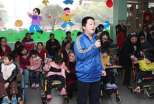 活動中,大家在晨光中心老師的帶領下,參觀了中心電腦課程、康復課程、語言課程等,詳細了解了孩子們平日的康復、生活、學習情況,并觀看了孩子們精心準備的豐富多彩的文藝節(jié)目,與他們進行了親切歡快地互動,孩子們的熱情的投入感染著在場的每一個人,贏得了陣陣的掌聲和歡呼聲。
