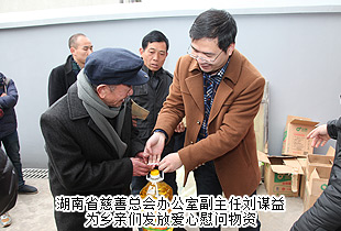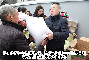 春節(jié)將至,鄉(xiāng)音裊裊,聊敘家鄉(xiāng)情;綠韻大愛,恩情悠悠,反哺桑梓心。2016年2月4日,安化縣政協(xié)主席李太源,中共安化縣委常委、政法委書記羅必勝,湖南省慈善總會(huì)副會(huì)長、綠之韻集團(tuán)董事長胡國安,湖南省慈善總會(huì)辦公室副主任劉謀益,湖南省志愿服務(wù)指導(dǎo)中心副主任蔣鐵陽,安化縣慈善總會(huì)辦公室主任肖晟,中共安化縣冷市鎮(zhèn)黨委書記周華山、鎮(zhèn)長楊鋒,綠之韻公益基金會(huì)秘書長蔣文及愛心志愿者代表等一行來到湖南省安化縣冷市鎮(zhèn)胡家村,為鄉(xiāng)親們送上慰問金、米、油和日用品等物資,為他們送去新春的祝福。湖南都市頻道、紅網(wǎng)、瀟湘晨報(bào)、安化電視臺(tái)等多家媒體對本次愛心慰問活動(dòng)進(jìn)行了報(bào)道。