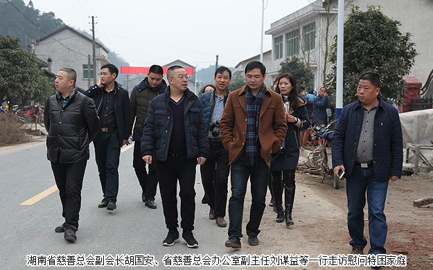 在胡家村村委干部的陪同下,湖南省慈善總會(huì)副會(huì)長、綠之韻集團(tuán)董事長胡國安,湖南慈善總會(huì)辦公室副主任劉謀益等一行先后來到該村特困鄉(xiāng)親家中,為每人送上慰問金,并與他們交談,了解他們的身體狀況和生活情況?!拔以诤掖遴l(xiāng)音中啟蒙,伴著改革開放長大,無論身在何方,都無法割舍我對生我養(yǎng)我的家鄉(xiāng)胡家村和淳樸鄉(xiāng)親們的深深思念和無限牽掛。綠之韻公司的發(fā)展和他個(gè)人的成功都離不開家鄉(xiāng)人民的支持和幫助,這樣的慰問和資助不會(huì)間斷。自己將繼續(xù)以奉獻(xiàn)愛心關(guān)注困難群體為己任,在自己力所能及的范圍內(nèi)盡量去幫助他人、回報(bào)桑梓,造福一方!”胡國安董事長幾句簡單而樸實(shí)的話語幾乎感動(dòng)了現(xiàn)場所有的人,其積極承擔(dān)社會(huì)責(zé)任,熱心公益事業(yè)的使命感和責(zé)任感,受到當(dāng)?shù)仡I(lǐng)導(dǎo)、群眾的交口稱贊和一致好評(píng)。