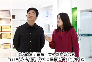 大眾創(chuàng)業(yè)、萬眾創(chuàng)新。適應(yīng)“互聯(lián)網(wǎng)+”,樹立“大數(shù)據(jù)思維”,踏上企業(yè)創(chuàng)新發(fā)展新征程。為深入了解湖南民營企業(yè)如何運用互聯(lián)網(wǎng)思維,激發(fā)企業(yè)發(fā)展新動力,迎接大數(shù)據(jù)時代背景下的機遇與挑戰(zhàn),2015年12月7日,湖南省工商局黨組成員、副局長魯先華,湖南省工商局經(jīng)濟檢查局局長韋翔,湖南省工商局經(jīng)濟檢查局副局長肖向陽等領(lǐng)導(dǎo)一行蒞臨綠之韻集團考察調(diào)研。綠之韻集團董事長胡國安、董事常務(wù)副總裁勞嘉等全程陪同調(diào)研。