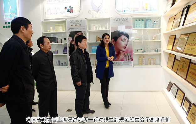 會后,湖南省政協(xié)副主席葛洪元等領(lǐng)導(dǎo)一行來到綠之韻進(jìn)行參觀指導(dǎo)。在綠之韻集團(tuán)董事長胡國安、董事常務(wù)副總裁勞嘉的陪同下,考察組一行首先參觀了綠之韻集團(tuán)大樓,聽取了勞嘉副總裁對綠之韻系列產(chǎn)品、集團(tuán)總部辦公區(qū)、企業(yè)資質(zhì)和榮譽(yù)展示區(qū)的介紹。綠之韻“以產(chǎn)品為導(dǎo)向”和“互聯(lián)網(wǎng)+大健康產(chǎn)業(yè)”的發(fā)展戰(zhàn)略,優(yōu)質(zhì)的產(chǎn)品研發(fā)體系和良好的企業(yè)形象得到了考察組各位領(lǐng)導(dǎo)的高度認(rèn)可和贊譽(yù)。