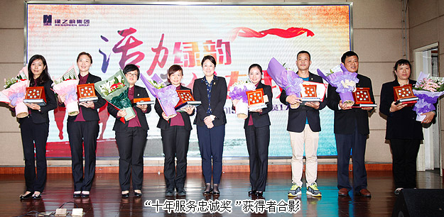 神圣的頒獎(jiǎng)環(huán)節(jié)聚焦了全場的目光,掌聲雷動(dòng),歡呼與尖叫響徹全場!豐收離不開綠之韻全體的辛勤耕耘,輝煌離不開綠之韻人的奮力拼搏。大會(huì)集中頒發(fā)了“三季度優(yōu)秀服務(wù)集體”、“三季度服務(wù)明星”、“五年服務(wù)英才獎(jiǎng)”和“十年服務(wù)忠誠獎(jiǎng)”等獎(jiǎng)項(xiàng)。獲獎(jiǎng)部門代表、個(gè)人依次踏上領(lǐng)獎(jiǎng)臺(tái),享受大家的聲聲祝福和熱烈掌聲,共同分享此時(shí)此刻的快樂。本次表彰會(huì)上,業(yè)務(wù)服務(wù)部、企劃部、山西分公司、保安組喜獲“三季度優(yōu)秀服務(wù)集體獎(jiǎng)”,王壯、姚雅、張海麗、張智皓、程瑤、喻鳴鸞、李翼、夏丹、高芳、張曉芳、楊芳、肖波、楊丹、王小波、湯霞琳、胡樹峰、齊峰雪榮獲“三季度服務(wù)明星”殊榮;張曉芳、周金霖、盛夏、高素丹、彭姣、李倩婷、唐鳴、王小波、鄒建華榮膺“五年服務(wù)英才獎(jiǎng)”,董事常務(wù)副總裁勞嘉上臺(tái)頒發(fā)了香港周大福珠寶公司特約設(shè)計(jì)師量身定做的、鐫刻獲獎(jiǎng)?wù)呙值淖憬饦s譽(yù)徽章和獎(jiǎng)金;肖巧林、蔣文、周瑛、李娟、湛甜、王薇、章建軍、胡益軍榮膺“十年服務(wù)忠誠獎(jiǎng)”,不僅收獲了全體綠之韻人的祝福,還按級(jí)別榮獲了60萬元購房補(bǔ)貼金、10萬元企業(yè)年金獎(jiǎng)勵(lì)金、1萬元的家庭帶薪旅游基金和由香港周大福獨(dú)家設(shè)計(jì)的金銀幣紀(jì)念獎(jiǎng)?wù)?,董事常?wù)副總裁勞嘉上臺(tái)頒發(fā)了由香港周大福獨(dú)家設(shè)計(jì)的金銀幣紀(jì)念獎(jiǎng)?wù)录蔼?jiǎng)金。
