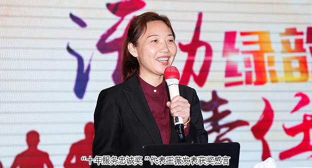 表彰是鼓勵(lì),是鞭策,更是一路前行的里程碑。“五年服務(wù)英才獎(jiǎng)”代表周金霖、唐鳴巾幗不讓須眉,將她們從業(yè)以來的優(yōu)秀經(jīng)驗(yàn)毫無保留的分享給全體員工,并且告訴大家要始終以一顆感恩的心、積極奮進(jìn)的心態(tài)投入到工作中,并且秉持信念不斷付出行動(dòng),必將得到不僅是物質(zhì)上、更是精神上的大回報(bào);“十年服務(wù)忠誠獎(jiǎng)”代表王薇就專業(yè)度,服務(wù)意識(shí)、行動(dòng)的力量為大家進(jìn)行了專業(yè)深度的分享。全體員工聆聽優(yōu)秀員工的精彩分享,讓個(gè)人智慧凝結(jié)成綠之韻全體的共同力量。