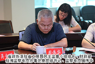為了促進新《消費法》的貫徹落實,進一步保障和改善民生,保護消費者合法權(quán)益,2015年6月9日—11日,湖南省政協(xié)常委、省政協(xié)經(jīng)濟科技委員會主任吳金明,省政協(xié)常委、省政協(xié)派駐省工商局民主監(jiān)督小組組長、財政部駐湘監(jiān)察專員辦事處原黨組書記、監(jiān)察專員周偉華,省政協(xié)委員、省政協(xié)派駐省工商局民主監(jiān)督小組副組長、省政協(xié)經(jīng)濟科技委員會專職副主任陳永芳,省政協(xié)委員、省工商局特邀民主監(jiān)督員、綠之韻集團董事長胡國安等一行赴邵陽、湘潭兩地調(diào)研“消費者權(quán)益保護工作”,并認真聽取了兩地工商局消費者權(quán)益保護工作的情況匯報。省工商局副局長強國躍,省工商局副巡視員伍作法等陪同調(diào)研。