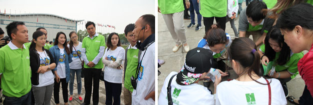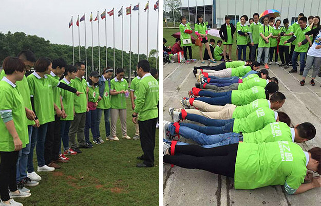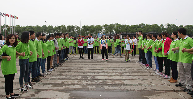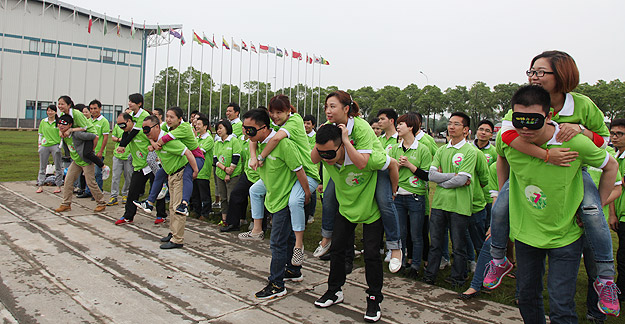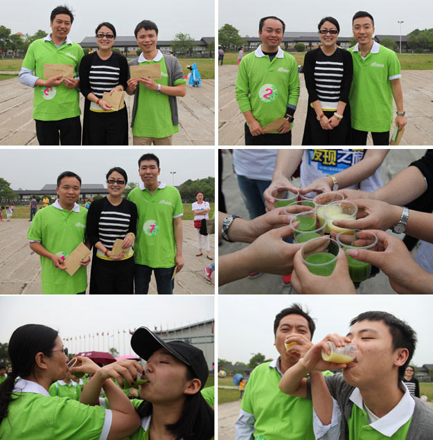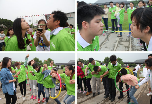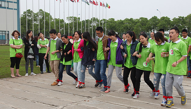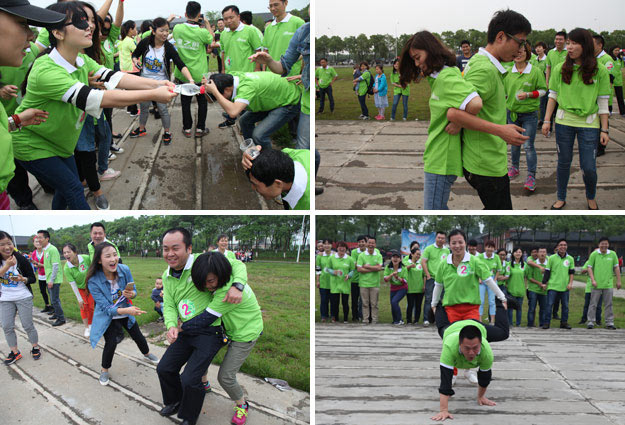 在千龍湖度假村的活動(dòng)草坪上,活動(dòng)組委會(huì)將所有參加活動(dòng)的員工分成了六組,在六個(gè)小組間展開(kāi)了別開(kāi)生面、妙趣橫生的趣味競(jìng)技活動(dòng)。在綠之韻集團(tuán)董事長(zhǎng)胡國(guó)安先生、董事常務(wù)副總裁勞嘉女士的親切指導(dǎo)下,在現(xiàn)場(chǎng)工作人員的精心組織和安排下,六個(gè)小組各推選出一個(gè)組長(zhǎng),并帶領(lǐng)所有組員充分參與“長(zhǎng)龍?jiān)綆X”、小組接力、綁腿賽跑等團(tuán)隊(duì)協(xié)作拓展活動(dòng)。