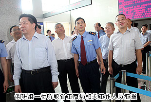 在湖南省工商局黨組書記、局長李金冬的陪同下,調(diào)研組一行首先來到湖南省工商行政管理局12315指揮中心聽取了關(guān)于湖南工商12315指揮系統(tǒng)的工作匯報。湖南工商12315指揮系統(tǒng)是工商機關(guān)受理消費者申訴舉報,調(diào)解消費糾紛,查處侵權(quán)案件,加強市場監(jiān)督的維權(quán)熱線,分為大屏幕拼接顯示墻系統(tǒng)、LED顯示屏系統(tǒng)和可視調(diào)度指揮系統(tǒng)等三個子系統(tǒng)。采用高清晰數(shù)字顯示、多屏圖像處理、網(wǎng)絡(luò)技術(shù)等科技手段,為12315指揮調(diào)度提供了網(wǎng)絡(luò)監(jiān)控、信息共享、數(shù)據(jù)分析和業(yè)務(wù)保障的綜合平臺。湖南省政協(xié)主席陳求發(fā)指出,一定不斷加強和改進消費維權(quán)工作,不斷拓展維權(quán)功能,努力把12315打造成經(jīng)濟領(lǐng)域的“110”,化解矛盾的“接訪點”,消費維權(quán)的“保護神”,工商形象的“展示窗”。