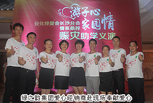 在接受湖南衛(wèi)視著名主持人王歡采訪時(shí),胡國(guó)安董事長(zhǎng)臉上溢滿凝重,眼中飽含熱淚,幾句簡(jiǎn)單而樸實(shí)的話語(yǔ)幾乎感動(dòng)了現(xiàn)場(chǎng)所有的人:“我在安化鄉(xiāng)音中啟蒙,伴著改革開放長(zhǎng)大,無論身在何方,都無法割舍我對(duì)生我養(yǎng)我的家鄉(xiāng)安化的深深思念和無限牽掛。沒有安化,就沒有綠之韻;災(zāi)害無情,游子有愛。作為一名安化大山深處走出來的企業(yè)家,更應(yīng)關(guān)注家鄉(xiāng),情系家鄉(xiāng),建設(shè)家鄉(xiāng),回報(bào)家鄉(xiāng),主動(dòng)承擔(dān)社會(huì)責(zé)任,用愛回報(bào)廣大桑梓。捐款只是一個(gè)開始,綠之韻集團(tuán)將資助更多家鄉(xiāng)公益事業(yè),繼續(xù)關(guān)注安化災(zāi)區(qū)重建,幫助災(zāi)區(qū)的人民渡過難關(guān)、重建美好家園,幫助受災(zāi)的莘莘學(xué)子早日重返校園!”