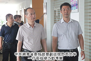 2014年7月25日,中共湖南省委統(tǒng)戰(zhàn)部副巡視員鄧文華、經(jīng)濟處副處長陳勝一行蒞臨綠之韻集團考察指導。