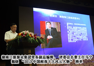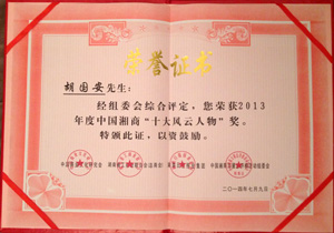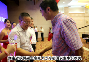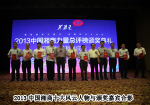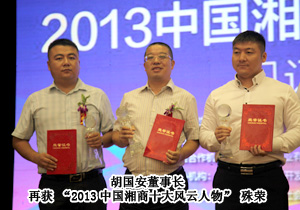 據(jù)悉,本次參加評選的企業(yè)家近200位,由省內(nèi)由各市州工商聯(lián)合推薦,根據(jù)其對企業(yè)成長、行業(yè)發(fā)展以及區(qū)域經(jīng)濟產(chǎn)生的重大影響等多項指標挑選出17名企業(yè)家于2013年年底起在天下湘商網(wǎng)上開展公眾網(wǎng)絡投票,并同步在《湖南日報》等主流媒體上刊登投票情況。最終,綠之韻集團胡國安董事長憑借多年來在湖南省的利稅大戶、解決就業(yè)、縣域經(jīng)濟、經(jīng)營模式等富民強省方面作出的重要貢獻,再獲殊榮。湖南省政協(xié)副主席張大方為胡國安董事長頒獎,胡國安董事長表示:在“中國夢”成為時代最強音的今天,中國商人應該有敢為人先的視野和情懷?!?013中國湘商十大風云人物”稱號的獲得,鞭策我轉(zhuǎn)變價值觀,努力成為經(jīng)濟財富的創(chuàng)造者、公益社會的推動者、和諧社會的建設(shè)者、先進文化的創(chuàng)造者。在“忠誠、擔當、求是、圖強”新湖南精神的引領(lǐng)下,我將帶領(lǐng)綠之韻集團發(fā)揮湖湘文化的優(yōu)勢,在湖南“四化兩型”建設(shè)中,在“四個湖南”的建設(shè)中發(fā)奮作為,為富民強省、實現(xiàn)“中國夢”作出新的貢獻!