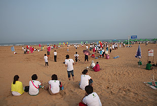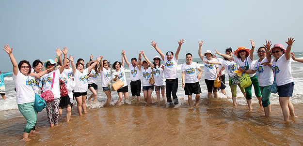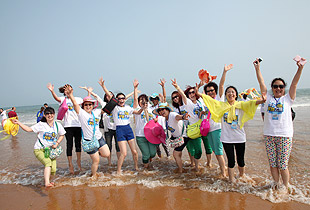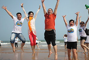 青島的海是獨一無二,享有“中國夏威夷”美譽的黃島沙灘更是令人神往不已。這不,中午時分,剛剛用完自助餐,綠之韻精英們就早已迫不及待,朝它狂奔去……在水天相接的地方,輪船一艘艘,輕舟一葉葉,白帆一點點。淺海處,身著短褲、泳衣的綠之韻精英們,男女老少,擊波游泳、踏濤沖浪,或做人體沙雕、坐摩天環(huán)車,笑聲不絕……海水、輪船、輕舟、白帆,綠之韻人和大自然構(gòu)成了一副五彩斑駁的畫卷,美不勝收。累了,倦了,精英們坐在一把把五顏六色的太陽傘下,或喝飲料聊天、暢談夢想,或舉目遠眺,靜賞美景???,那些童心未泯的綠之韻精英們,有的在試圖尋找貝殼,有的在追逐嬉戲,有的在騰空留影……其樂無窮。
