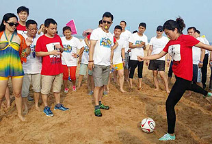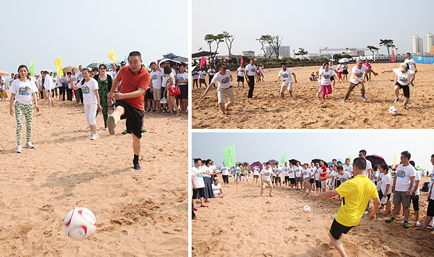 舉世矚目的足球世界杯在巴西激戰(zhàn)正酣,一場綠之韻精英的沙灘足球賽也隨之拉開戰(zhàn)幕。胡國安董事長親自為本場比賽開球,參加比賽的十三個VIP團激情碰撞,作對廝殺,光著腳在松軟的沙灘上帶球、過人、射門的感覺與草坪上截然不同,比賽中參賽的家人們經(jīng)常出現(xiàn)沙土飛揚,人仰馬翻的場景,相當有趣味。臨近傍晚,經(jīng)過將近四個多小時小組賽、淘汰賽、半決賽、決賽的緊密、激烈賽程,4個VIP團脫穎而出。最終,綠之韻精英VIP5團、VIP2團、VIP7團和VIP11團,分列冠亞季軍。VIP5團隊員在比賽后慶祝勝利時將奪冠功臣夏運良拋向空中,收獲了全場家人們熱烈的掌聲和尖叫聲!