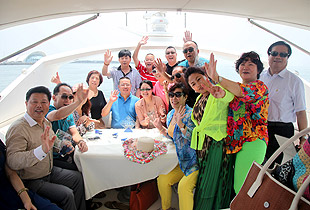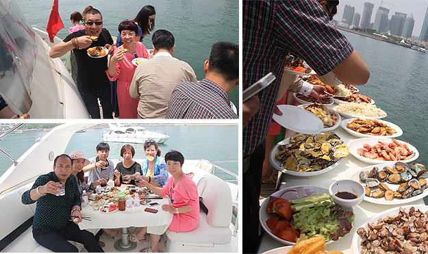 驕陽海風下,游艇載著綠之韻精英們在碧波萬頃,一望無際的海上破浪前行。三艘游艇沿著青島著名景觀航線“奧帆中心——五四廣場——太平角——第二海水浴場——八大關(guān)——匯泉灣——棧橋——海軍博物館——團島灣——跨海大橋——北海船廠”,綠之韻精英們有的欣賞青島美景,有的悠閑聊天,有的暢享美食,有拍照合影,不亦樂乎。