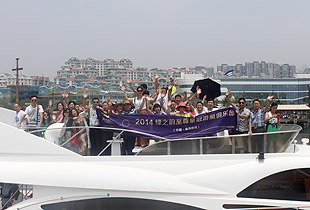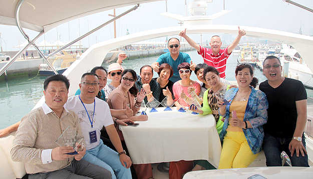 6月23日,碧空如洗,海風拂面,山東青島2008年奧帆賽訓(xùn)練基地內(nèi),游人如織,熱鬧非凡,2014綠之韻至尊皇冠游艇俱樂部(青島航線)出航儀式圓滿舉行。這是一次高規(guī)模、高檔次、高品位的綠之韻精英聚會。在歡呼聲與掌聲中,在美麗藍莓天使的簇擁下,綠之韻集團董事長親自為曹鳳華、徐華、張建軍、張吉慶、韓曉鳴、蘇龍輝、鄭百合、黃翔、李政沅、劉鳳軍、劉建平、劉文麗、孫彩虹、李長宇、陳平、李平首批16位綠之韻游艇俱樂部特邀會員頒發(fā)了象征無上榮耀的水晶紀念牌。