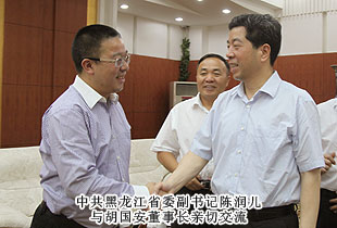11日下午,中共黑龍江省委副書記陳潤兒親切會見了湖南民企代表團,并代表黑龍江省委、省人大、省政府、省政協(xié)向大家的到來表示歡迎和感謝。作為湖南省各個行業(yè)的優(yōu)秀代表企業(yè),陳潤兒書記很關(guān)心企業(yè)的發(fā)展情況,他指出:非公有制經(jīng)濟是社會主義現(xiàn)代化建設(shè)的重要推動力量,非公有制經(jīng)濟人士是中國特色社會主義事業(yè)建設(shè)者。改革開放以來,我國民營經(jīng)濟蓬勃發(fā)展,湖南的非公有制經(jīng)濟發(fā)展很快,對湖南省經(jīng)濟發(fā)展做出了巨大貢獻,很多企業(yè)的發(fā)展戰(zhàn)略、運營模式和產(chǎn)業(yè)布局值得哈爾濱很多企業(yè)學(xué)習(xí)借鑒。在交流過程中,胡國安董事長匯報了綠之韻集團發(fā)展近況,陳潤兒書記親切指出:我去綠之韻考察過兩次,是一家很不錯的生物醫(yī)藥企業(yè),直銷的模式在湖南也很有影響力,要繼續(xù)又快又穩(wěn)的發(fā)展,做大做強。