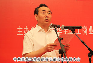 中央統(tǒng)戰(zhàn)部副部長,全國工商聯(lián)黨組書記、常務(wù)副主席全哲洙,全國工商聯(lián)副主席黃小祥、謝經(jīng)榮、黃榮、莊聰生、李路、林毅夫、安七一和兼職副主席、中國民間商會副會長及黑龍江省政協(xié)主席杜宇新、中共黑龍江省委副書記陳潤兒等各級省、市領(lǐng)導(dǎo)出席。中共黑龍江省委常委、副省長郝會龍主持。