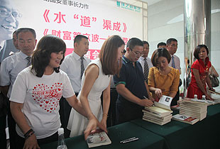 一個(gè)人、一支筆、一段故事,《水“道”渠成》解碼人生智慧。胡國安董事長(zhǎng)傾盡十年心血、以綠之韻精英團(tuán)隊(duì)、核心文化“水的精神”為精髓,著力打造的成功智慧書籍《水“道”渠成——成就一生的智慧密碼》震撼面市以來,一直深受廣大讀者、粉絲狂熱追捧,市場(chǎng)反映異?;鸨?。2014年6月6日,繼北京、湖南、江蘇、上海等多個(gè)省市的巡回簽售會(huì)之后,胡國安董事長(zhǎng)應(yīng)山東地區(qū)廣大讀者、粉絲的強(qiáng)烈要求,現(xiàn)身山東濰坊參加《水“道”渠成》讀者簽售見面會(huì),1200多名鐵桿擁躉很早就在簽售儀式現(xiàn)場(chǎng)排起了長(zhǎng)龍,爭(zhēng)相一睹“水文化”之集大成者董事長(zhǎng)胡國安先生的風(fēng)采,不到一個(gè)小時(shí)1000多冊(cè)《水“道”渠成》瞬間售罄。