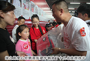 6月1日,九點(diǎn)不到,綠之韻集團(tuán)董事常務(wù)副總裁勞嘉、綠之韻集團(tuán)湖南分公司張薇與張建軍、沈慧芳等一行近百人就到了泓鑫桃林商業(yè)廣場(chǎng)。悶熱的天,攢動(dòng)的人頭,人聲鼎沸的現(xiàn)場(chǎng),讓現(xiàn)場(chǎng)的人們無(wú)不滿頭大汗??蓱汛Ь戎鸷蛺?ài)心書(shū)包的綠之韻慈善基金志愿者們卻是激情滿懷,他們都期待著將愛(ài)心傳遞,將善舉發(fā)揚(yáng)。