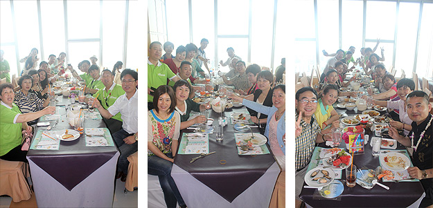曼谷玉葉太空酒店建筑高度309米,總樓層數(shù)為88 層,是市內(nèi)最高的地標(biāo)性建筑。綠之韻精英們來(lái)到位于第76層BAIYOKE SKY旋轉(zhuǎn)餐廳享受國(guó)際自助餐。這里的自助餐包含各國(guó)風(fēng)味,品種繁多,鮮美的海鮮、綿蜜的甜品、豐富的熱帶水果……精英們一邊享用美食,一邊360度觀賞曼谷市容,1500平方公里的美景盡收眼前,妙不可言!