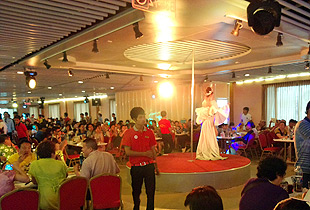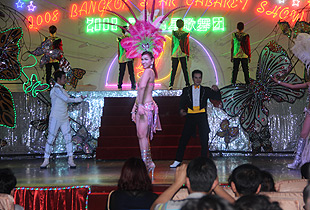 夜幕降臨,海岸亮起了燈火,在海風(fēng)的吹拂下,芭提雅變得神秘起來(lái)。大街上霓虹閃爍,旅人如織,處處回蕩著動(dòng)感勁爆的音樂(lè),充溢著肆無(wú)忌憚的美色誘惑。東方公主號(hào)的人妖表演,也是當(dāng)?shù)氐奶厣?,這里集中了泰國(guó)最漂亮的人妖,的確一個(gè)個(gè)都是風(fēng)情萬(wàn)種的,才藝出眾,讓精英們享受到這里獨(dú)特的異域風(fēng)情。