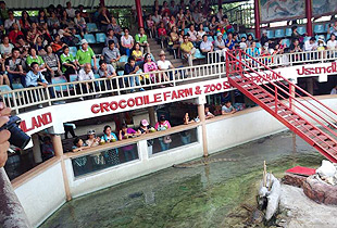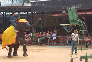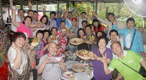 東芭樂(lè)園,占地面積1600多畝,是一個(gè)泰式鄉(xiāng)村風(fēng)格的休閑兼度假公園。園中有人工湖,水光瀲滟,小河繚繞于亭臺(tái)樓閣之間,樹(shù)木蔥籠,鳥語(yǔ)花香,景色如畫。園中設(shè)有文化村,是集中展示泰國(guó)民族文化的場(chǎng)所。園內(nèi)節(jié)目三大部分:一是泰國(guó)的民俗表演,二是大象表演,三是植物園。民俗歌舞很質(zhì)樸、很地道,表演者就是村寨中人;大象表演格外精彩。綠之韻精英們或看著表演,或與大象合影,或飲一口冰鎮(zhèn)的椰汁,各自用不同的方式享受著度假的閑適和快樂(lè)。