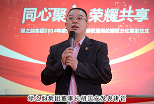 2014年5月17日下午,綠之韻集團2014年勞動股份期權(quán)暨崗位期權(quán)分紅獎金頒發(fā)儀式成功舉行。綠之韻集團董事長胡國安、董事常務(wù)副總裁勞嘉、財務(wù)總監(jiān)劉淑娟、綠之韻集團總裁助理方彥雄、綠之韻國際商學(xué)院執(zhí)行院長孫心琥及全體員工參加了本次會議。會議由綠之韻國際商學(xué)院陳敏主持。