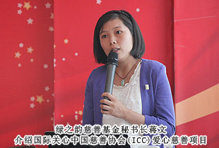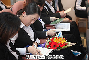 會議臨近尾聲,綠之韻慈善基金秘書長蔣文向大家簡單介紹了國際關(guān)心中國慈善協(xié)會(簡稱ICC),以及該協(xié)會在中國開展的一系列愛心慈善項目的情況。下月中旬,綠之韻集團將聯(lián)合國際關(guān)心中國慈善協(xié)會(ICC)與走進衡陽,開展幫扶孤殘兒童、殘疾青年的愛心援助項目,她代表綠之韻慈善基金發(fā)出了愛心捐贈的倡議。儀式現(xiàn)場,綠之韻人真情涌動,踴躍認捐,伸出援助之手,獻出綿薄之力,用愛見證改變生命的力量,讓愛見證綠之韻人的力量!