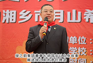 綠之韻集團董事長胡國安深情地說:“我是從山村走出來的孩子,我深切地知道孩子們渴望學習的心情。我從小就希望能夠憑自己的力量,幫助別人。如今,綠之韻集團不僅承擔著社會責任,更培養(yǎng)了一大批有能力幫貧扶困的經(jīng)銷商愛心志愿者。企業(yè)做大了就是屬于社會,屬于國家的,“關愛生命,回報社會”是綠之韻的使命,綠之韻湘鄉(xiāng)市月山鎮(zhèn)希望學校已經(jīng)是綠之韻捐贈的第九所希望小學,捐贈38所綠之韻希望學校是全體綠之韻人心中的夙愿。我沒有別的期望,就想以實際行動,以自身點點滴滴的實踐,帶動更多的中國優(yōu)秀企業(yè)一起參與承擔社會責任,共同推動社會責任發(fā)展。希望孩子們好好學習,有一技之長,將來為祖國作出更大的貢獻?!?br/>