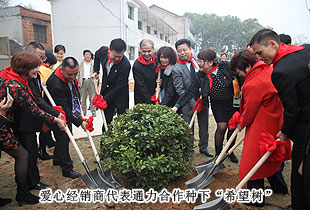 揭牌儀式結(jié)束后,胡國安董事長與綠之韻愛心經(jīng)銷商在李勇翔校長的帶領下一起參觀了月山鎮(zhèn)學校的教學環(huán)境,并植下了八棵“希望樹”,希望孩子們就像青青樹苗一樣,充滿生機與朝氣,努力學習,成為國家的棟梁,將來更好地建設家鄉(xiāng)。