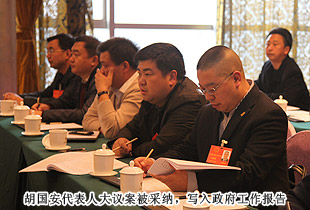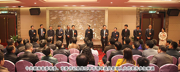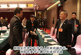 開幕式后,中共湖南省委常委、市委書記易煉紅,中共長沙市委副書記、長沙市人民政府市長胡衡華一行來到各地區(qū)代表團(tuán),與出席市十四屆人大二次會(huì)議的代表們一起審議政府工作報(bào)告,聽取代表們的建議和意見。在瀏陽市代表團(tuán)分組審議座談會(huì)上,就2014年長沙經(jīng)濟(jì)社會(huì)如何保持平穩(wěn)快速發(fā)展,代表們紛紛獻(xiàn)計(jì)獻(xiàn)策。中共長沙市委副書記、長沙市人民政府市長胡衡華,長沙市人大常委會(huì)副主任黃佳惠,長沙市人民政府副市長、瀏陽市委書記曹立軍等市領(lǐng)導(dǎo)成員仔細(xì)傾聽每位代表發(fā)言,認(rèn)真記錄,還不時(shí)一起探討。胡國安代表在審議時(shí)針對胡市長在講話中提到的“全力打造瀏陽河生態(tài)經(jīng)濟(jì)示范區(qū),把瀏陽經(jīng)開區(qū)培育成新的千億園區(qū)”和“加快移動(dòng)電子商務(wù)基地建設(shè),促進(jìn)電子商務(wù)加速發(fā)展,爭創(chuàng)國家電子商務(wù)示范基地”的兩個(gè)觀點(diǎn),他結(jié)合園區(qū)、綠之韻集團(tuán)實(shí)際,詳盡闡述了綠之韻集團(tuán)的生態(tài)經(jīng)濟(jì)發(fā)展思路,以及在瀏陽河與撈刀河畔建立生態(tài)休閑區(qū)、建設(shè)五星級(jí)生態(tài)酒店和綠之韻連鎖酒店、發(fā)展湖南黑茶產(chǎn)業(yè)、打造藍(lán)莓產(chǎn)業(yè)鏈等未來八大發(fā)展規(guī)劃。胡衡華、黃佳惠、曹立軍等省市領(lǐng)導(dǎo)認(rèn)真聆聽胡國安代表的發(fā)言,邊聽邊記,邊記邊問,對發(fā)言中提及的思路和做法表示高度的肯定。由于胡國安代表長期扎根基層,服務(wù)群眾,盡職履責(zé),深入調(diào)研,連續(xù)兩屆擔(dān)任人大代表,所提交的議案均緊扣社會(huì)熱點(diǎn)和難點(diǎn),普遍反映比較強(qiáng)烈,長沙市人民政府副市長、瀏陽市委書記曹立軍對此印象十分深刻。分組審議后,曹立軍副市長立軍同胡國安代表進(jìn)行了面對面的親切交談。他向胡國安代表不久前獲評“長沙市優(yōu)秀人大代表典型風(fēng)采人物”表示祝賀,希望胡國安代表進(jìn)一步發(fā)揮出人大代表參與決策、監(jiān)督協(xié)助、橋梁紐帶的作用,為長沙全面推進(jìn)“六個(gè)走在前列”、率先建成“三市”、強(qiáng)力實(shí)施“三倍”、加快現(xiàn)代化進(jìn)程,作出更大的貢獻(xiàn)!