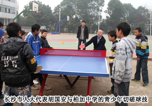 考察期間,長沙市人大代表、綠之韻集團董事長在瀏陽柏加初級中學操場與青少年們零距離交流,切磋乒乓球藝,了解他們心中最真實的需求。座談會上,胡國安代表按眼中所見,心中所感,暢談了關(guān)注青少年成長及推進教育體制改革的若干建議。并表示:希望青少年們志存高遠、增長知識、錘煉意志,使一個個小小“少年夢”匯聚成強大的“中國夢”。綠之韻團支部作為關(guān)注青少年成長的主要平臺,仍將對青少年成長教育高度關(guān)注,充分發(fā)揮團思想陣地和組織陣地的職能,切實關(guān)注青少年的成長,為他們的發(fā)展構(gòu)建良好的社會環(huán)境。