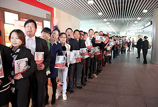 《水“道”渠成》一書(shū),是綠之韻“掌舵人”胡國(guó)安董事長(zhǎng)嘔心瀝血十年之久的傾力之作,綠之韻十周年華誕之際,甫一面市就備受廣大讀者追捧,市場(chǎng)反映十分強(qiáng)烈。2013年11月19日,胡國(guó)安董事長(zhǎng)應(yīng)廣大讀者、粉絲的要求,蒞臨湖南黃花國(guó)際機(jī)場(chǎng)參加《水“道”渠成》讀者簽售見(jiàn)面會(huì),300多名鐵桿粉絲和擁躉一大清早就在簽售儀式現(xiàn)場(chǎng)排起長(zhǎng)龍,爭(zhēng)相購(gòu)買,一睹中國(guó)“水文化”之集大成者董事長(zhǎng)胡國(guó)安先生的風(fēng)采,不到兩個(gè)小時(shí)近600冊(cè)《水“道”渠成》瞬間售罄。