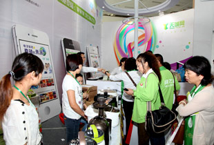 在會展中心一角,別出心裁的紫婓藍莓酒專展,讓人眼前一亮。
