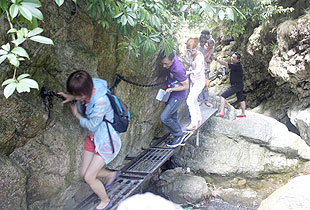 在湖南省安化縣的崇山峻嶺和山澗溪流之間,綿延著一條神秘的茶馬古道。千百年來,無數(shù)的馬幫在這條道路上默默行走,悠遠(yuǎn)的馬鈴聲,回蕩在山谷、急流和村寨上空,開辟了一條通往域外的經(jīng)貿(mào)之路,形成了世界上地勢最高、山路最險、距離最遙遠(yuǎn)的茶馬文明古道。在關(guān)山峽谷層巖疊翠,怪石嶙峋的道路上行走,綠之韻同仁們盡情體驗了一番攀巖探險的刺激和樂趣。正是因為古道的艱險超乎尋常,沿途壯麗的自然景觀也不斷地激發(fā)人潛在的勇氣、力量和忍耐。“馬幫憑借自己的剛毅、勇敢和智慧,用心血和汗水澆灌了一條通往茶馬古道的生存之路、探險之路和人生之路。茶馬古道上馬蹄印仍歷歷在目,帶著我們遙憶先輩們的經(jīng)貿(mào)故事,值得我們深思和學(xué)習(xí)!”綠之韻董事常務(wù)副總裁勞嘉深深感慨道。