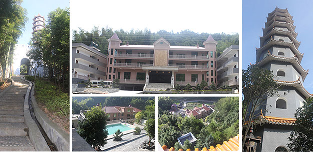 湖南省安化縣冷市鎮(zhèn)小九溪村,胡國安董事長的家鄉(xiāng)。大巴車沿著胡國安董事長為家鄉(xiāng)捐資修建的水泥路蜿蜒前行,深掩在崇山之間的“綠韻山莊”讓大家充滿期待。從一間木質(zhì)結(jié)構(gòu)的小房屋,到三棟主樓聳立的大宅院,這里面包含著胡國安董事長成功的縮影。下了車,大家紛紛駐足在綠韻山莊平面示意圖前,樂開了鍋。這哪是家宅?分明就是一個度假村。明珠觀音塔、明珠閣、長城、怡然亭、游泳池、健身園、野生獼猴桃園……一整座山,構(gòu)成了綠韻山莊,也承載了董事長為家爭光的夢想。