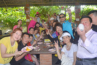 芭堤雅的東芭樂園,也足具熱帶風情,東芭樂園占地1600多畝,是一個泰式鄉(xiāng)村風格的休閑兼度假公園,進入其中仿佛進入一個大大的莊園。放眼望去皆是雅致的風景,無論是參觀養(yǎng)殖房的奇花異草還是精心安排的大象表演,都充滿著樂趣,綠之韻的精英們或看著表演,或與大象合影,或飲一口冰鎮(zhèn)的椰汁,各自用不同的方式享受著度假的閑適和快樂,美不勝收、樂享其中。